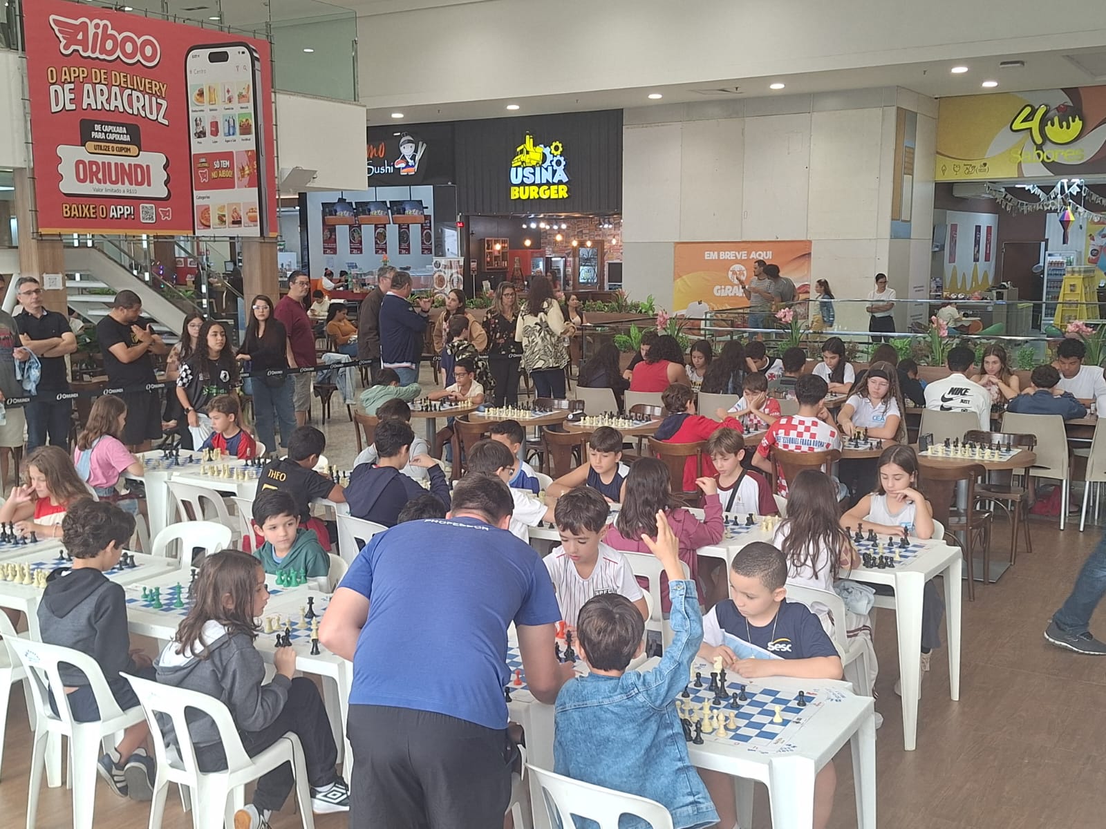 Aconteceu neste sábado (2), na Praça de Alimentação do Shopping Oriundi, a 6ª Etapa do Circuito Municipal de Xadrez de Aracruz. O evento, promovido pelo professor Alessandro Camporez, contou com a participação de mais de 100 estudantes, categorias sub 8, 10, 12, 15 e Open (acima de 16), das escolas Emef Ezequiel Fraga Rocha, Espaço Livre, CEA, Casa do Estudante, Darwin, Colibri, CEPC e Sesc, Sesi/Senai e Magia de Aprender, de Ibiraçu.