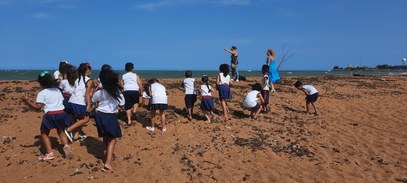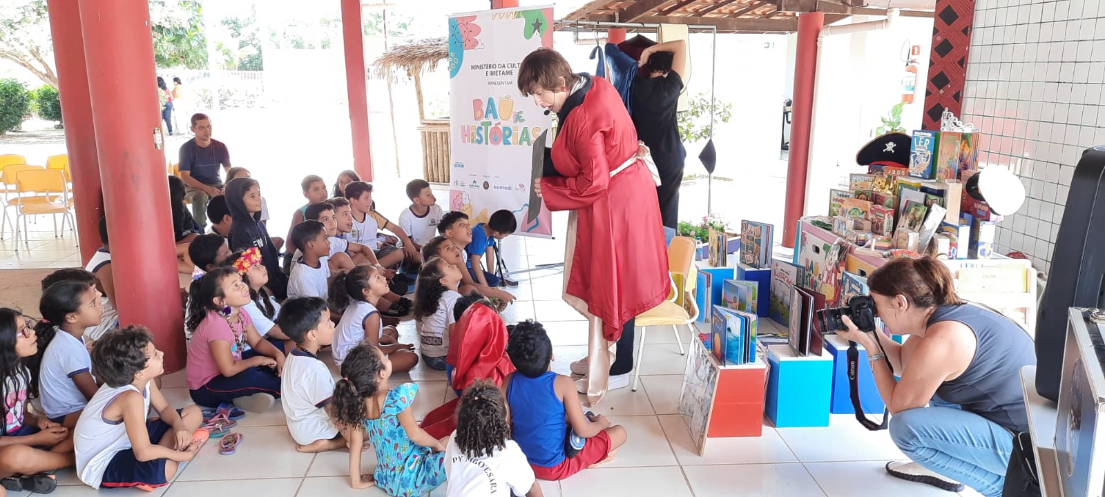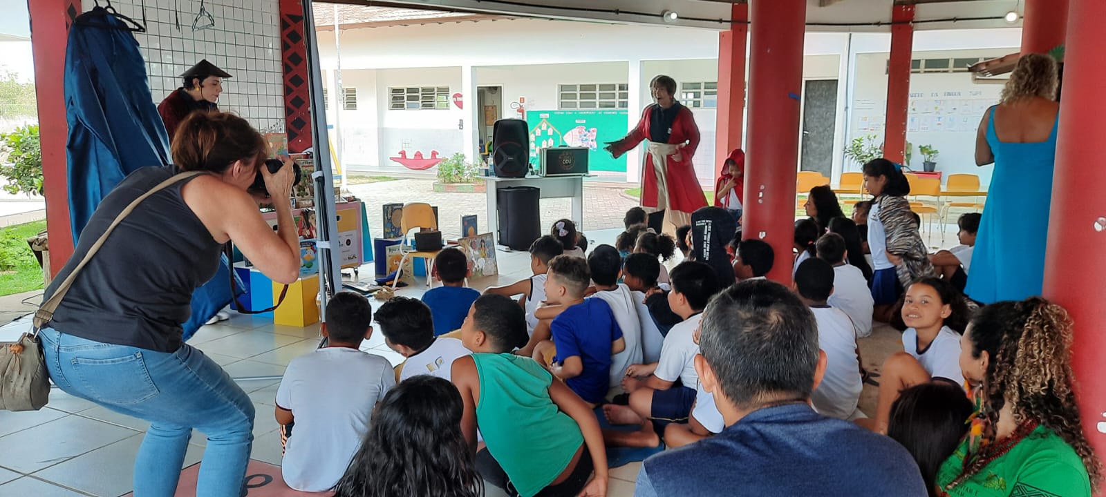 A primeira escola visitada foi a EMPI Irajá, onde, na ocasião, as crianças estavam prestigiando e aprendendo com as ações lúdicas do Baú da História, uma iniciativa apoiada pelo Ministério da Cultura e empresa Imetame. Os estudantes também fizeram uma demonstração de uma roda de dança indígena, cantando na língua nativa, Tupinikim.