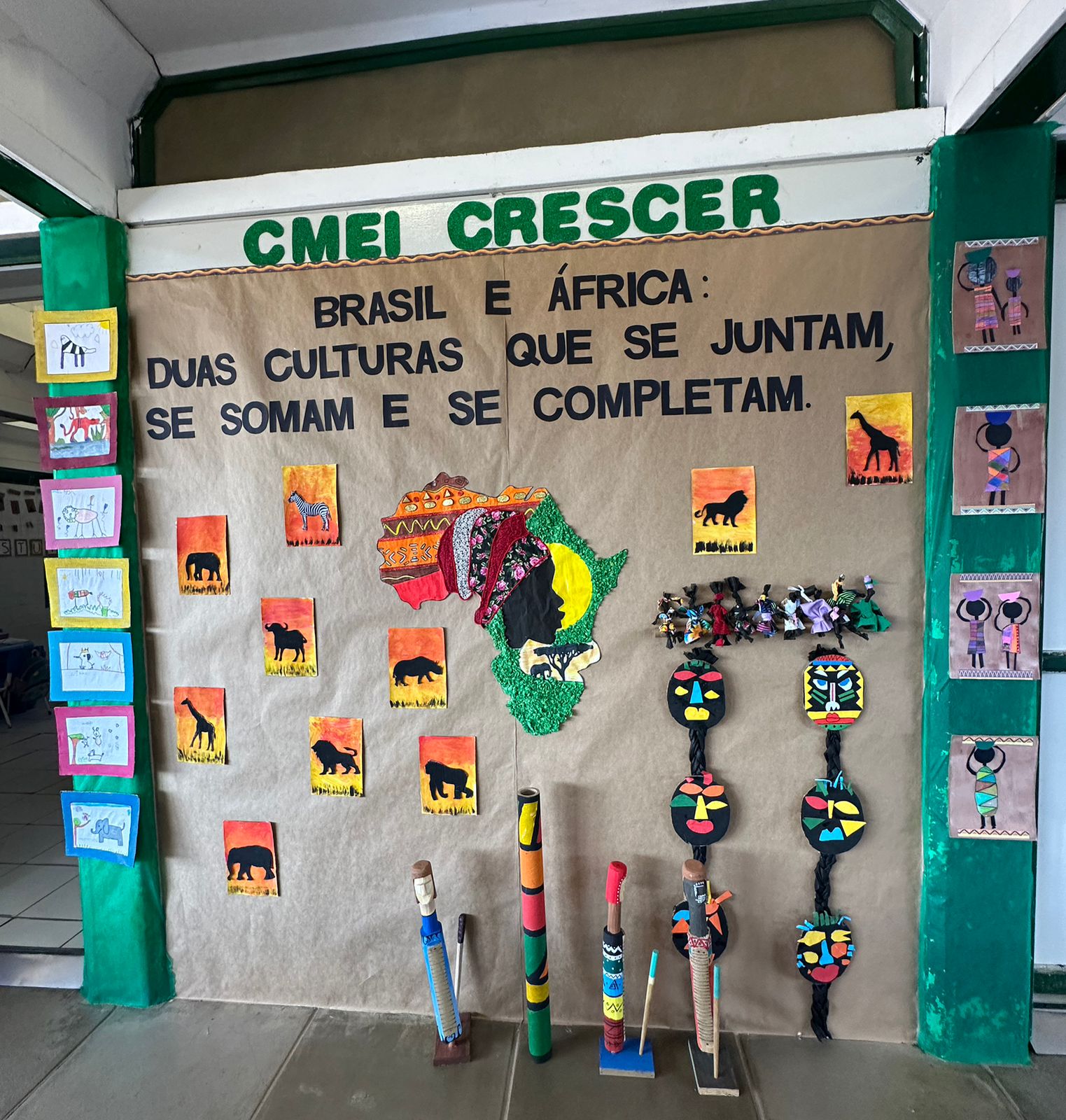 Durante o desenvolvimento das ações do projeto, o professor atua como mediador nesse processo de aprendizagem, no qual as relações étnico-raciais na Educação Infantil são desenvolvidas a partir do lúdico. A culminância também contou com belíssimas exposições dessas culturas, que se juntam, se misturam e se completam, mostrando por exemplo, animais africanos, como a galinha da angola, a cor da pele, as culinárias e moradias dos povos originários, a dança da chuva, dentre outros.