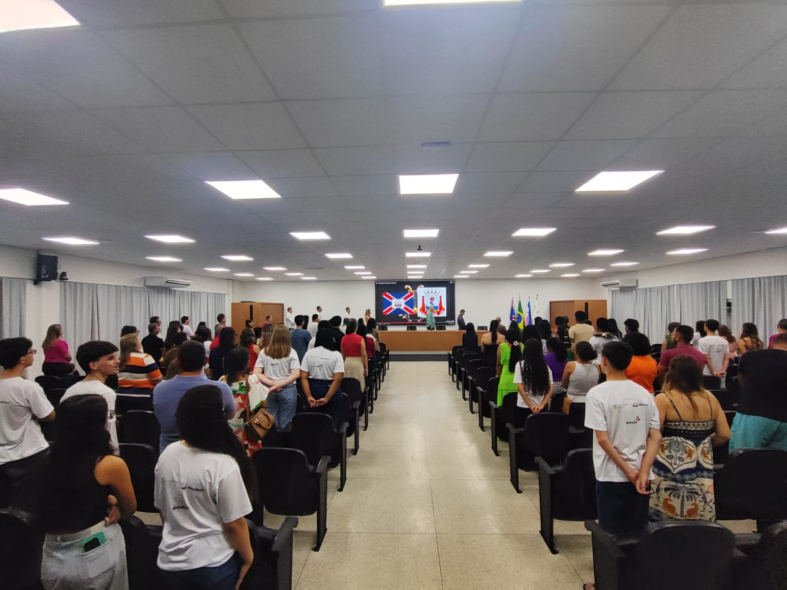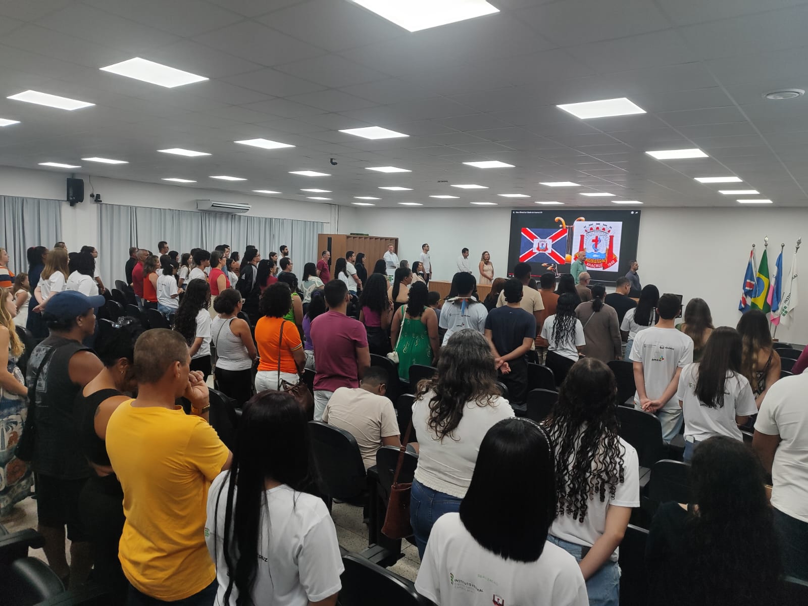 Aconteceu na noite desta quinta-feira (16), no Auditório do Ifes Campus Aracruz, uma cerimônia que marcou a conclusão e a certificação dos estudantes que concluíram o curso preparatório Rumo ao Sucesso em 2025. Pais e amigos dos estudantes compareceram em peso para prestigiar esse momento de solenidade e entrega dos certificados. Compuseram a mesa de honra os professores Leandro Bitti Santana, Diretor-Geral do Ifes Campus Aracruz, Thiago Magalhães, Diretor de Ensino e Coordenador do Rumo ao Sucesso e Warley Alves, Diretor de Pesquisa, Pós-Graduação e Extensão, além dos secretários de Governo (Segov) Saulo Meireles e de Educação (Semed), Jenilza Spinassé.