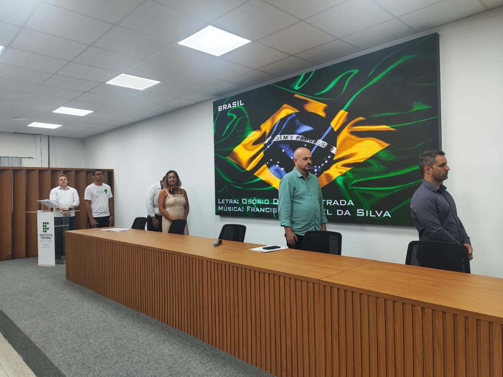 Dando sequência à cerimônia, a aluna Betariz Loureiro foi chamada à frente para revelar aos presentes uma dinâmica que foi trabalhada durante as aulas de português. “Já no nosso primeiro dia de aula, nos foi pedido para que escrevêssemos cartas para nós mesmo falando do futuro, lendo e refletindo sobre como foi nossa evolução e como estamos hoje em dia para fazer a prova, mesmo porque passamos meses nos preparando. Todos nós devemos refletir e acreditar que podemos ingressar no Ifes, porque fomos selecionados para estar aqui porque temos potencial”, argumentou.