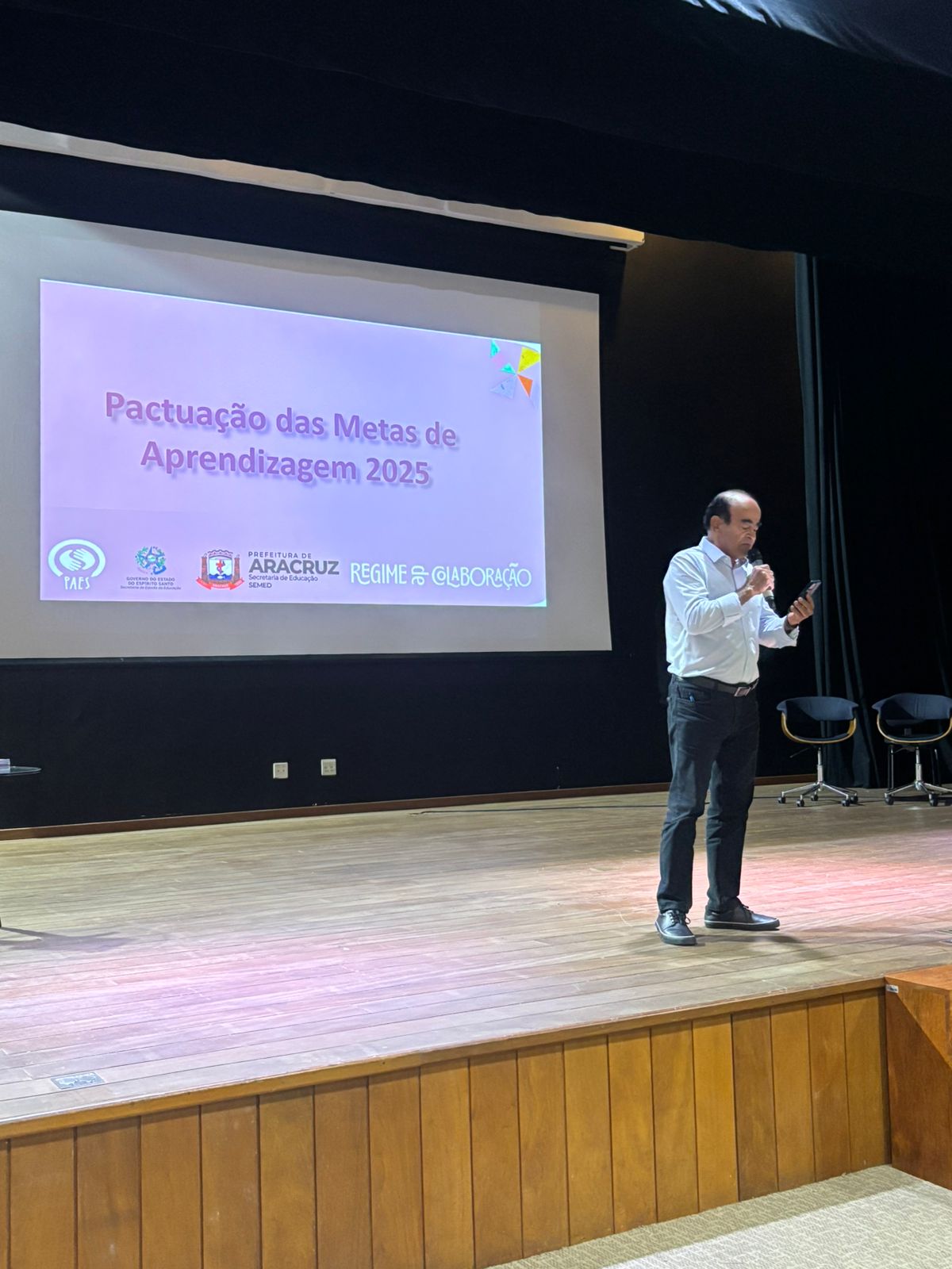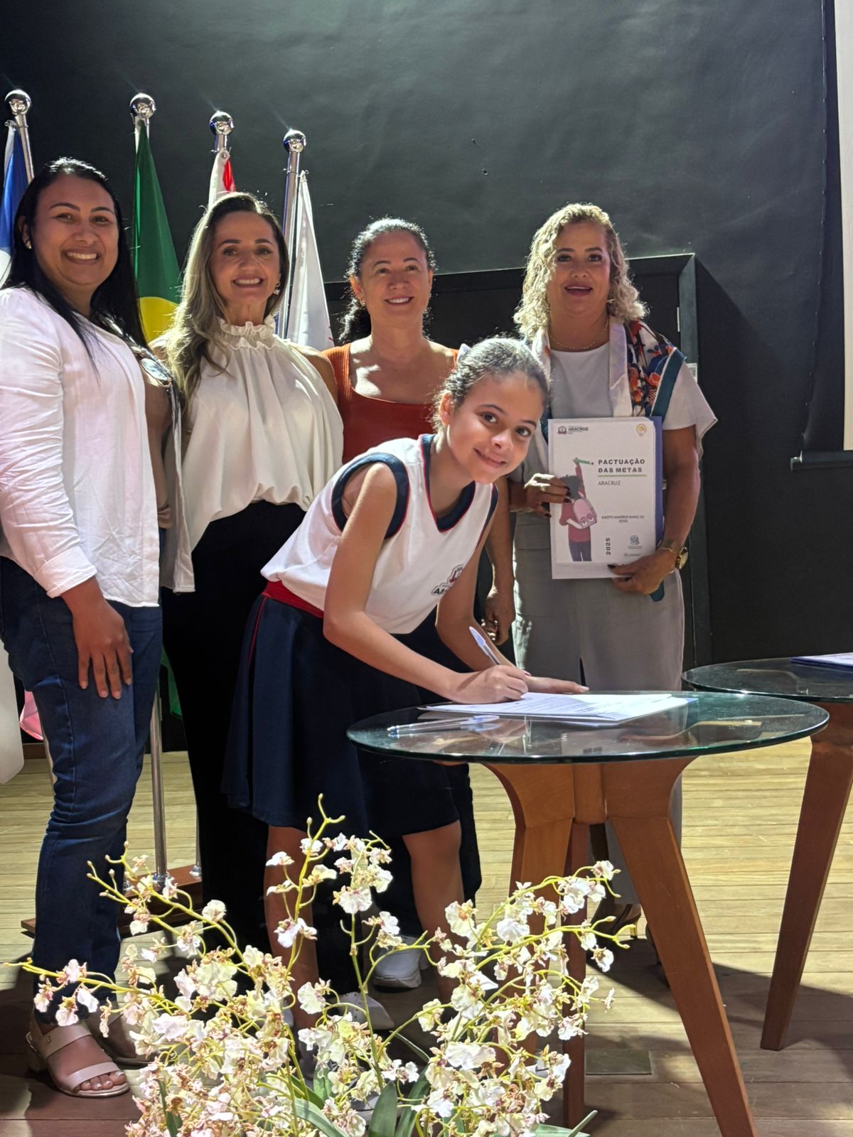 A Prefeitura de Aracruz, por meio da Secretaria de Educação (Semed), promoveu na tarde desta quinta-feira (29), no Auditório do Sesi/Senai, Vila Nova, a Cerimônia de Pactuação de Metas de Ensino e Aprendizagem da Rede Municipal de Ensino. O evento teve como principal objetivo promover o fortalecimento das aprendizagens essenciais, garantir a alfabetização na idade certa e reduzir as desigualdades educacionais, com foco na melhoria contínua dos indicadores de qualidade da rede.