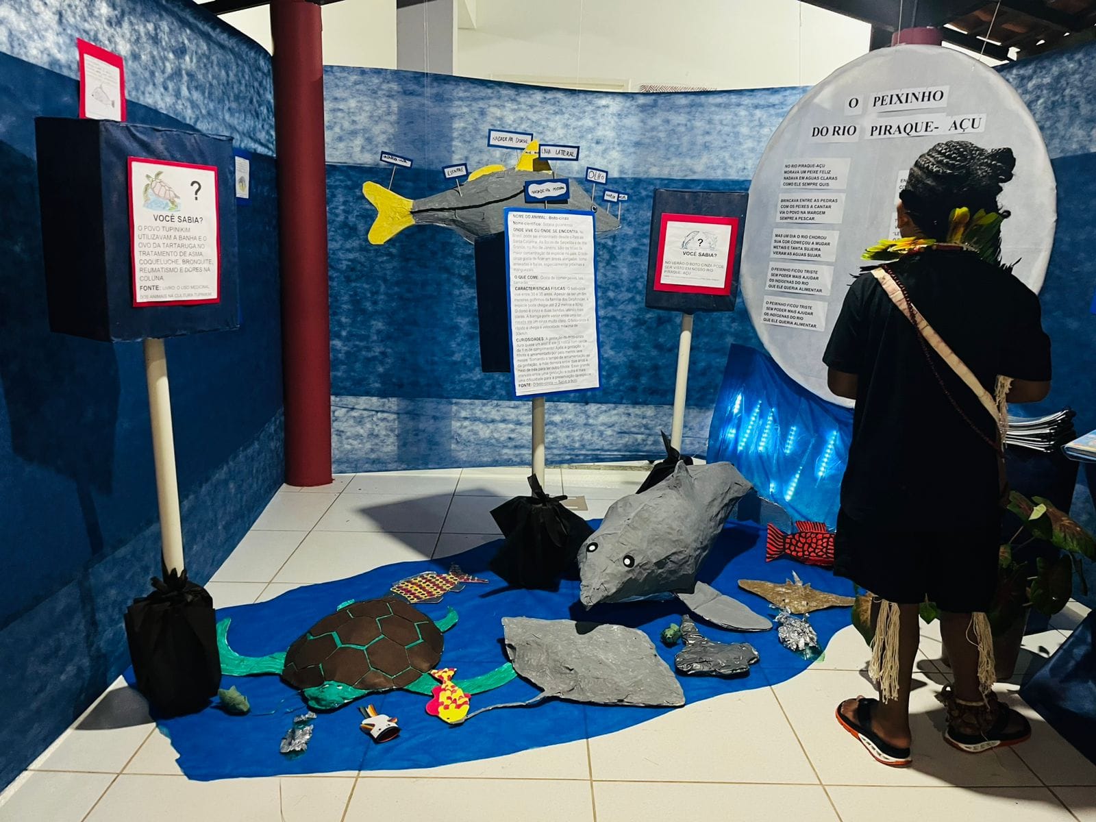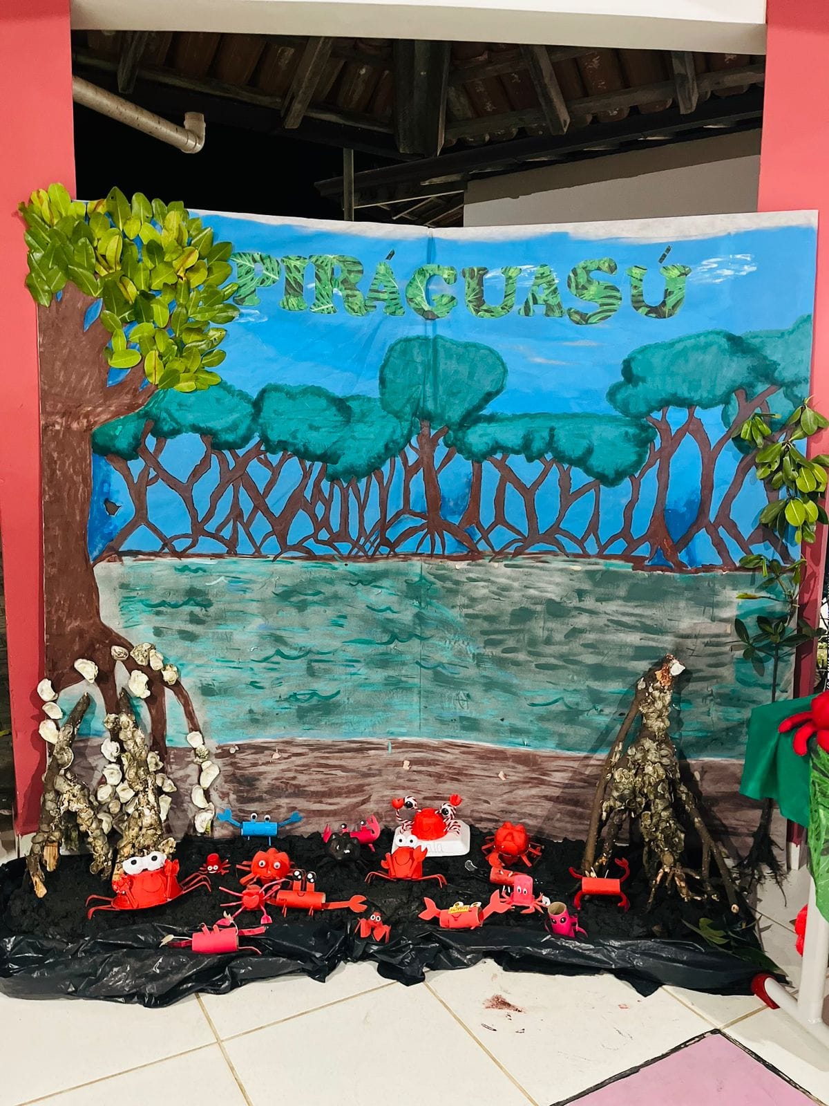 Os trabalhos foram produzidos com as crianças e a participação das famílias, envolvendo assim, toda a comunidade escolar. Por meio das artes, eles retrataram toda beleza e riqueza do rio Piraquê-Açu, o manguezal, peixes e crustáceos. Também foram expostos fotos da confecção dos trabalhos, bilhetes e livros, além de textos com muita informação e artesanatos.