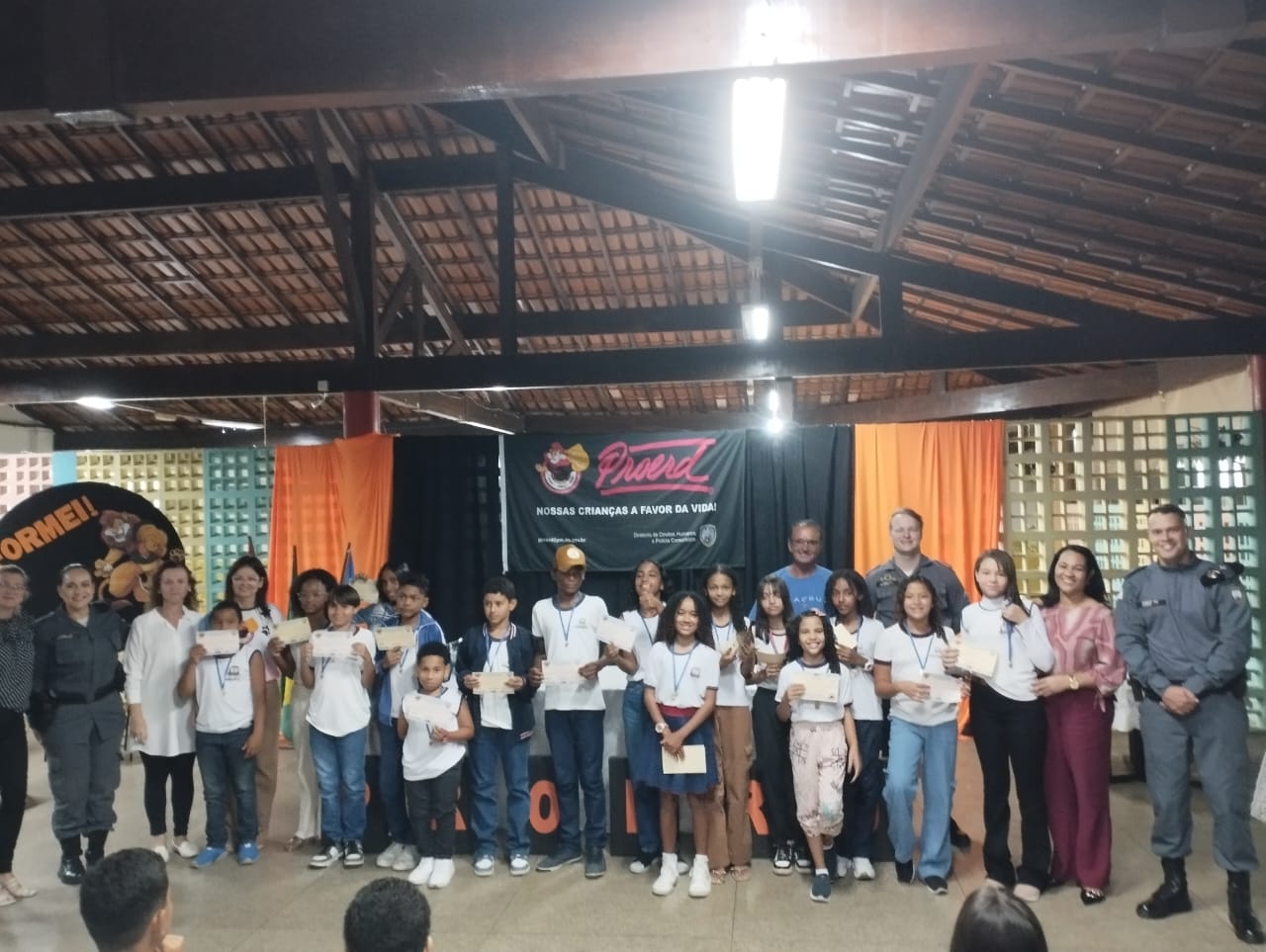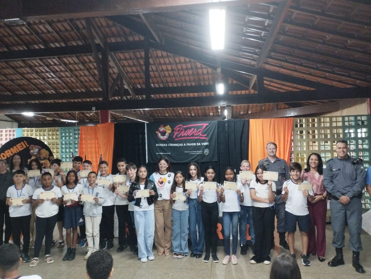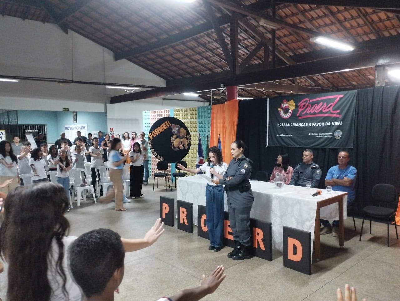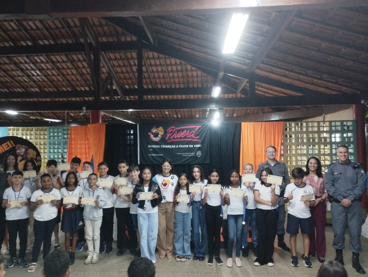 A Secretaria de Educação (Semed) da Prefeitura de Aracruz deu início na noite desta quarta-feira (26), às cerimônias de formatura do Programa Educacional de Resistência às Drogas (Proerd) do 2º semestre de 2025. Na ocasião, 75 estudantes dos 5º anos da Emef Mário Leal Silva, em Guaraná, foram certificados após concluírem as etapas do programa.