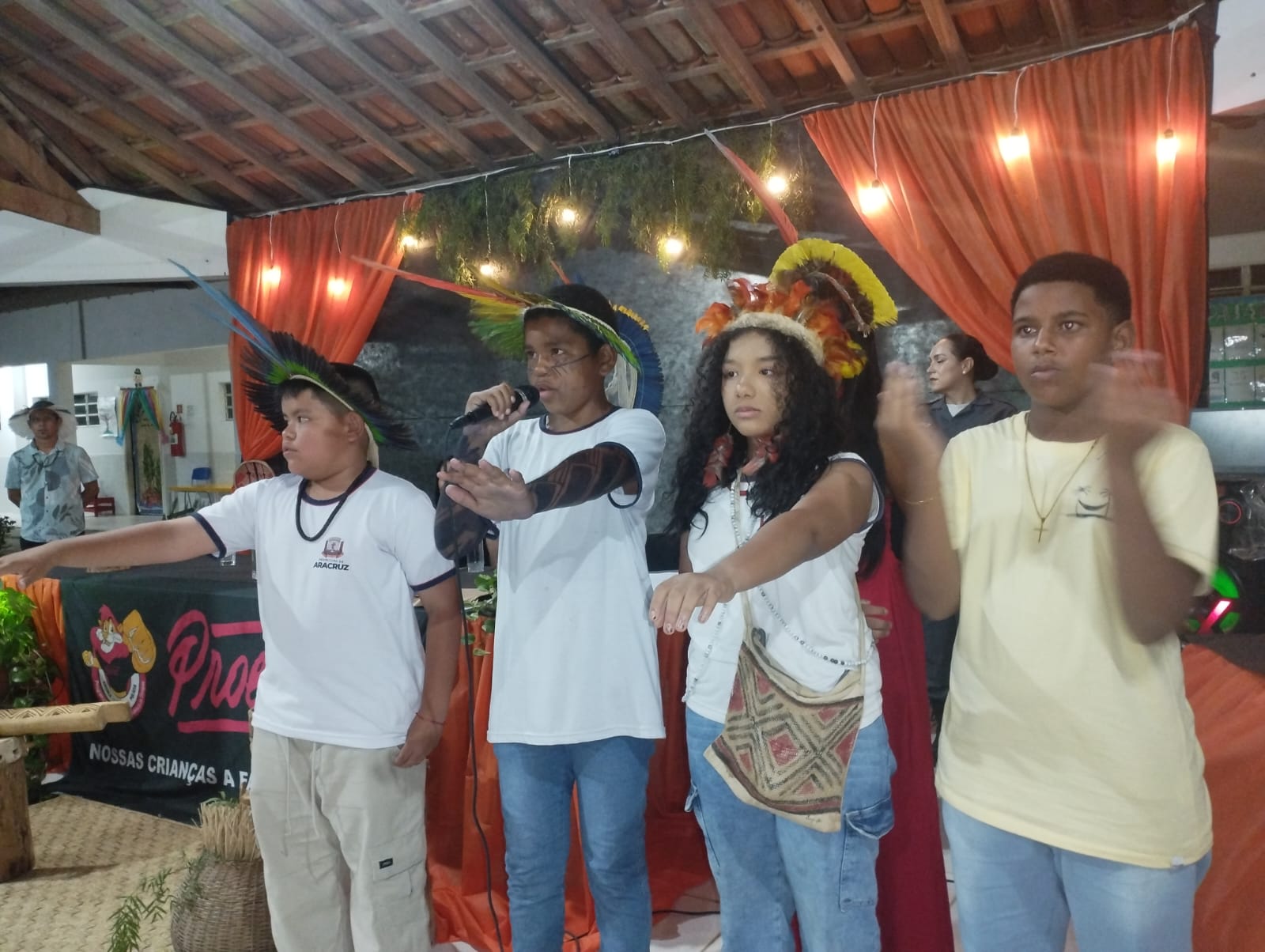 A diretora da escola Mariane Marques Vicente iniciou sua fala na língua tradicional, fazendo uma auto descrição de sua pessoa e agradeceu a participação da comunidade escolar. “Boa noite parentes. Sou uma mulher guerreira do povo tupiniquim. Queria agradecer a toda comunidade escolar e à Polícia Militar por mais um ano em que encerramos a formatura do Proerd. Este programa para nós é de grande importância, porque quem é atendido, não é somente nossos estudantes, e sim todo nosso povo, que tem uma excelente aceitação desse projeto e que ele possa continuar, porque nosso futuro está dentro das escolas”, afirmou.