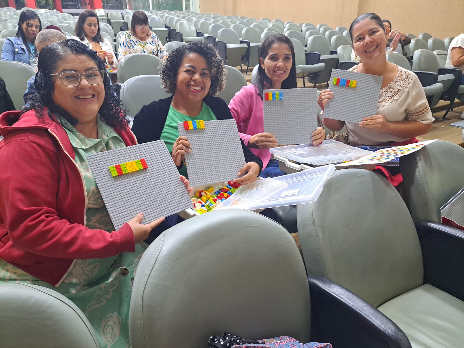 As propostas contemplaram desde a Educação Infantil até o Ensino Fundamental, e cada grupo desenvolveu uma atividade voltada ao coletivo da turma, utilizando o LEGO como recurso para o ensino e a ludicidade. Também convidaram os participantes a refletirem sobre o próprio engajamento durante a atividade, fazendo uma analogia com o envolvimento de uma criança em situação de brincadeira.