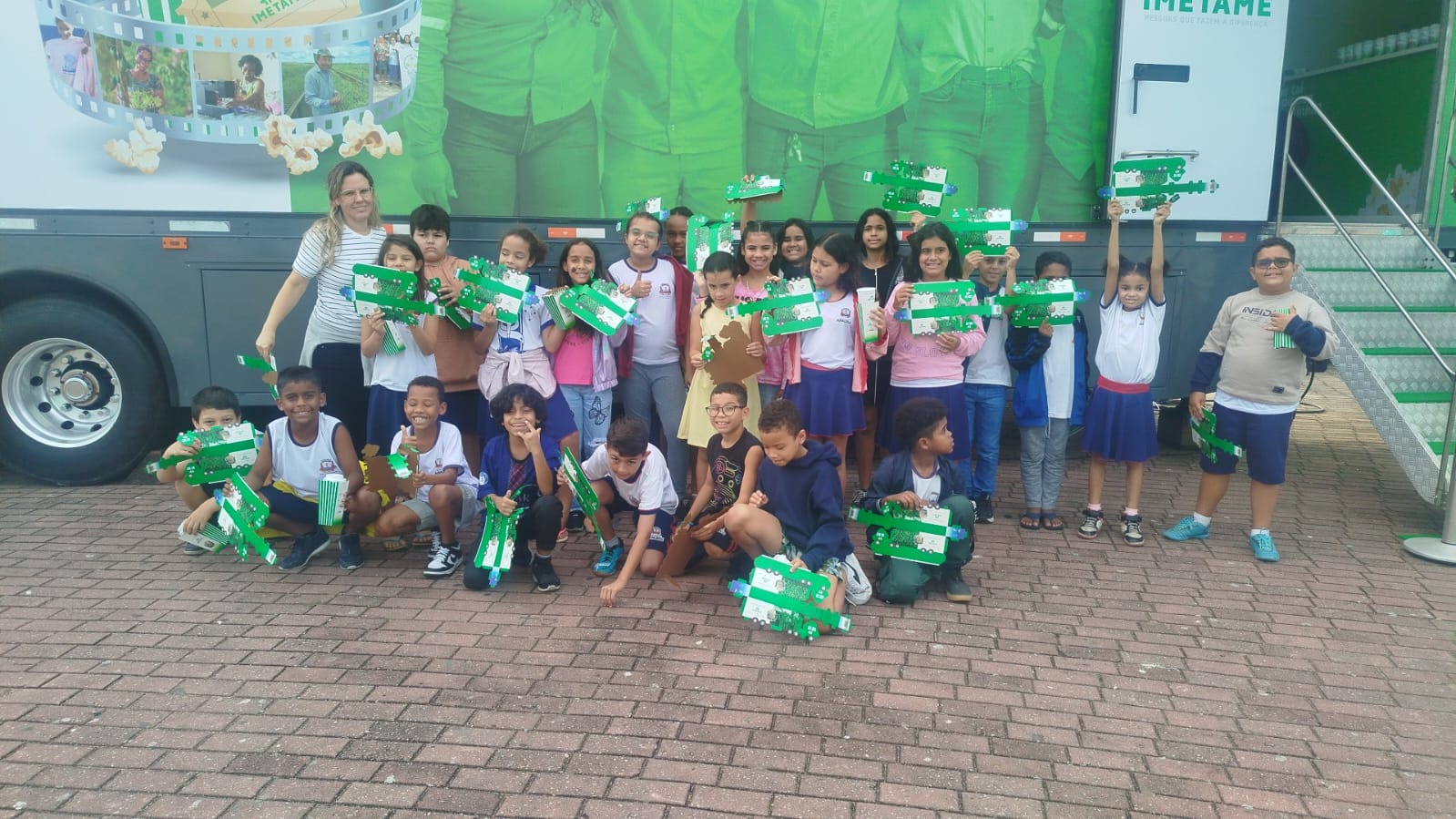 A Prefeitura de Aracruz, por meio das Secretarias de Educação (Semed) e de Turismo e Cultura (Semtur), em parceria com o Ministério da Cultura e a empresa Imetame, finalizou nesta segunda-feira (22), o projeto “Histórias que contam histórias”. O Cine Carreta Imetame atendeu aproximadamente 1920 estudantes das Escolas Municipais de Ensino Fundamental (Emefs) Álvaro de Souza, Ermelinda Giacomim Farina, Zenília Varzem Ribeiro, Professora Bárula Neves dos Santos, Samoel Costa, Arandu Retexakã (Emefi) e dos Centros Municipais de Ensino Infantil (Cmeis) Amália Coutinho, Mãe Aurélia e Marília Rezende Scarton Coutinho.