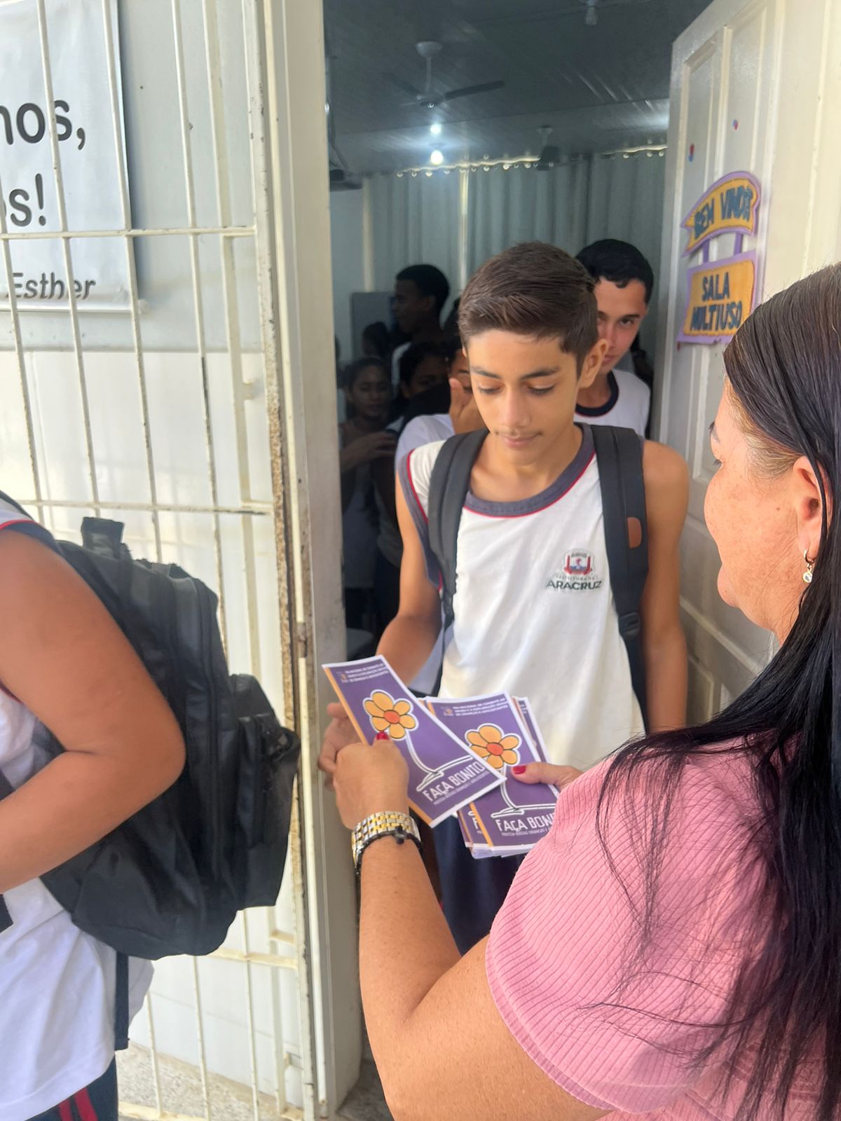 A Prefeitura de Aracruz, por meio das secretarias de Assistência Social (Semas), Educação (Semed) e Saúde (Semsa), vem promovendo neste mês de maio, ações de combate e prevenção à violência sexual contra crianças e adolescentes nas escolas da Rede Municipal de Ensino. Nesta semana, as equipes psicossociais, com apoio do conselho tutelar e vara da infância, estiveram na EMEFTI Esther Nascimento, em Santa Rosa, para passar aos estudantes a importância desse trabalho.