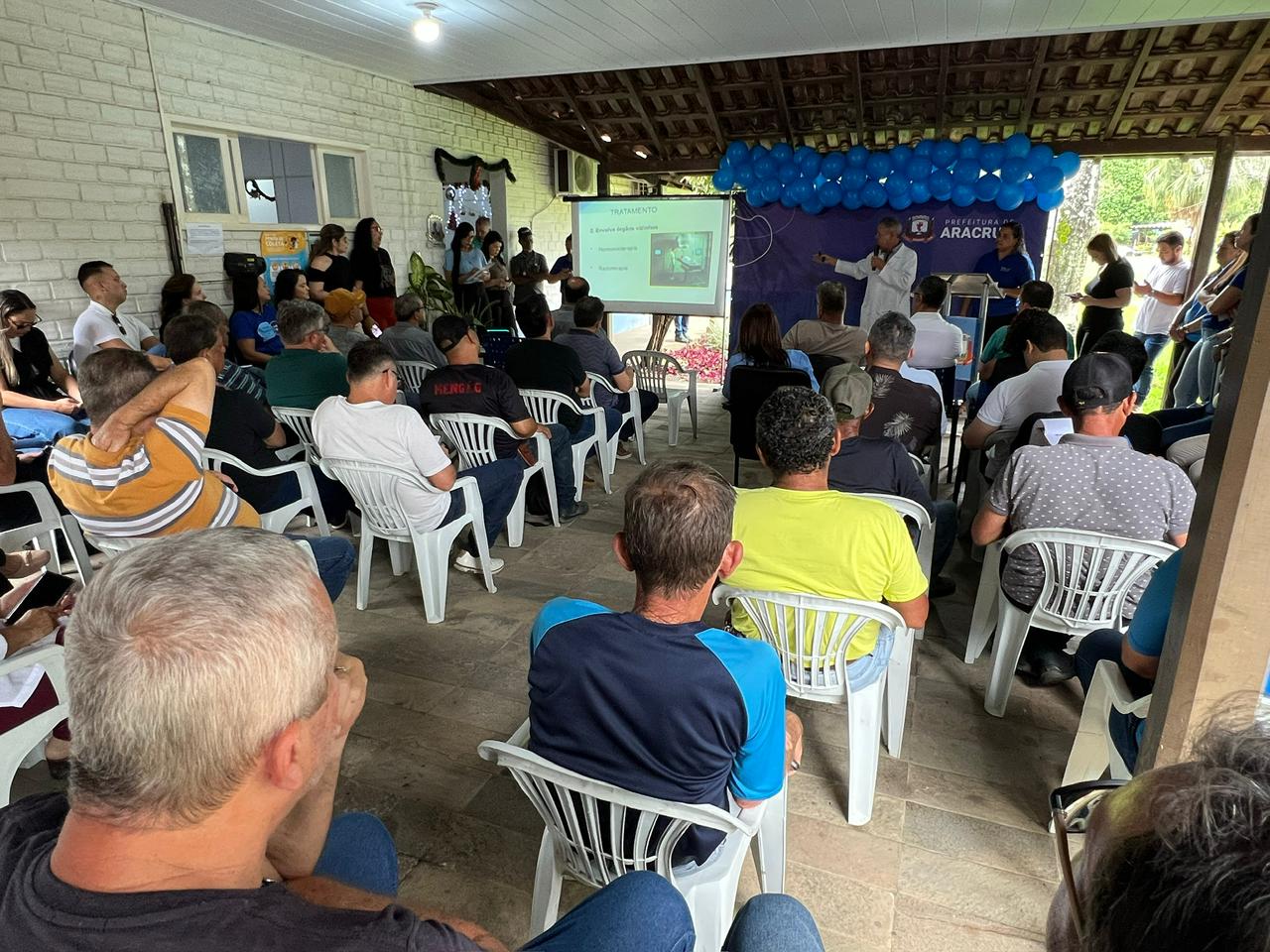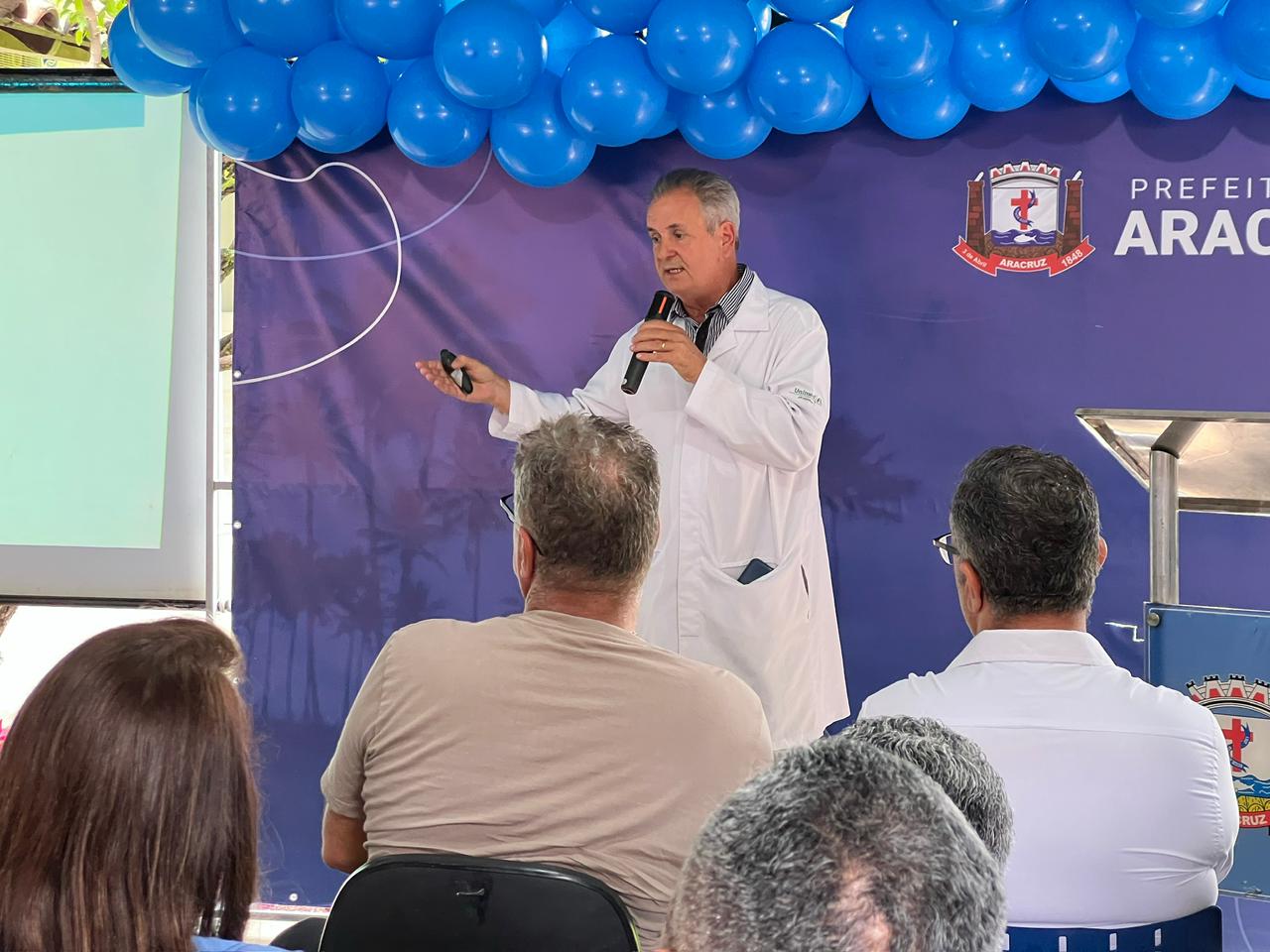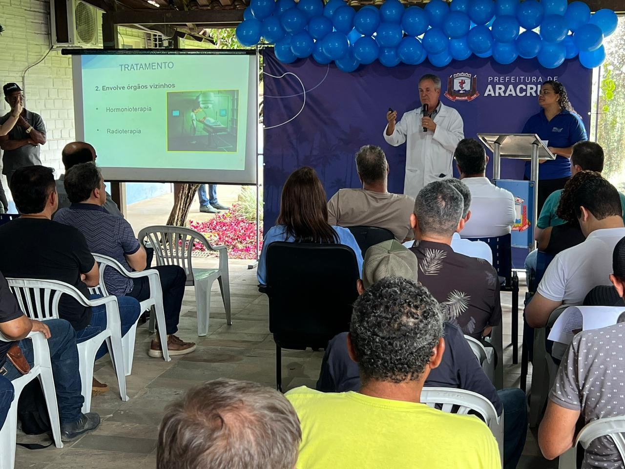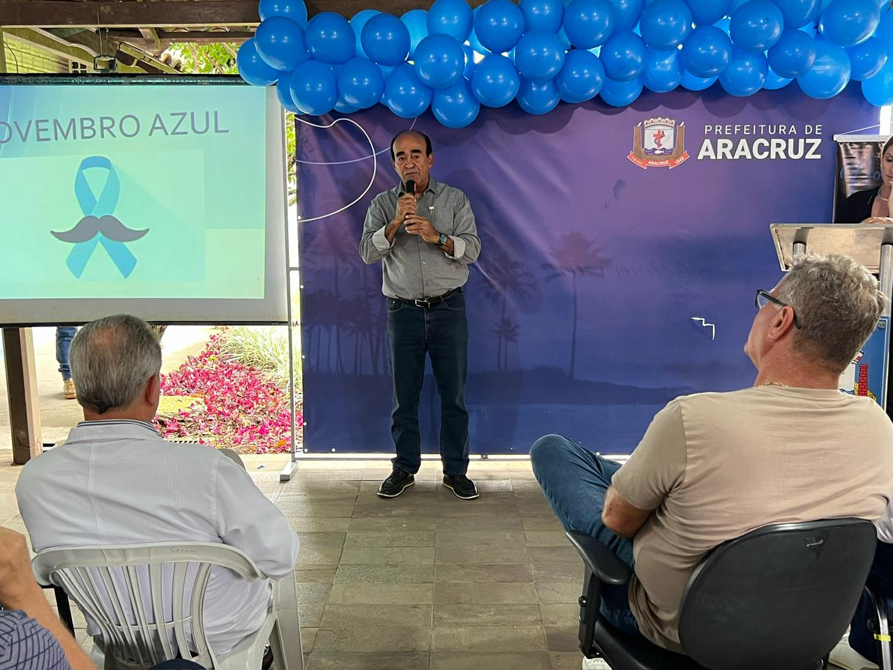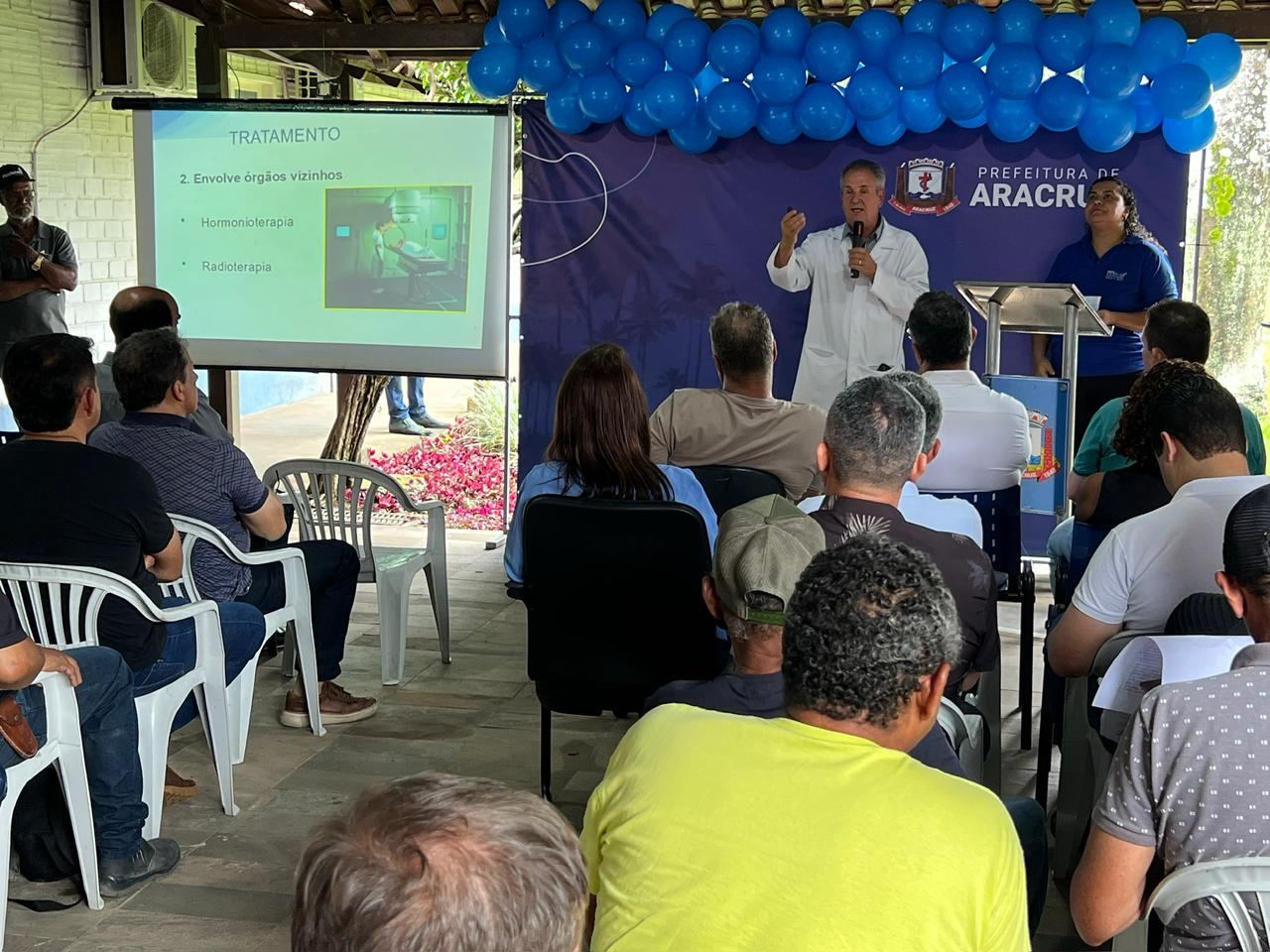 A Prefeitura de Aracruz realizou, nesta terça-feira (25), a palestra Novembro Azul com o tema “Cuidar da saúde também é coisa de homem”, em uma ação voltada especialmente aos servidores públicos municipais. O encontro aconteceu em frente ao Gabinete do Prefeito e foi promovido pela Secretaria Municipal de Gestão (Semge), em parceria com o Grupo Innovar.
