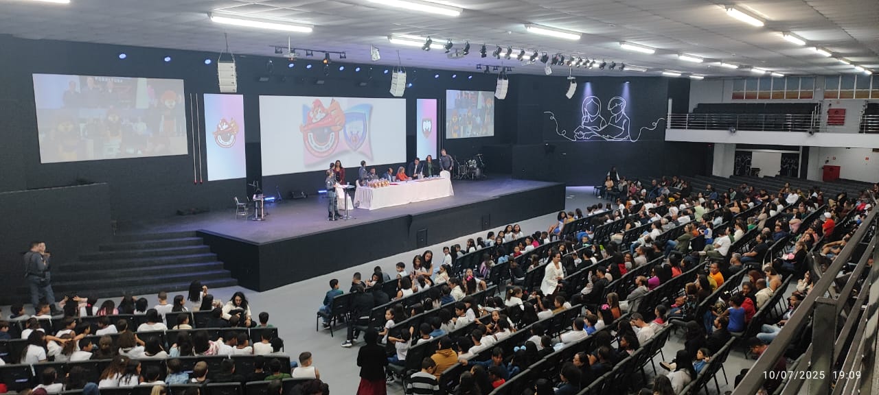 A alegria e agitação tomaram conta na noite desta quinta-feira (10) durante encerramento das formaturas do Programa Educacional de Resistência às Drogas e à Violência (Proerd) no primeiro semestre de 2025. A cerimônia ocorreu no salão da Primeira Igreja Batista de Aracruz (Pibara), e contou com cerca de 400 alunos das Emef´s Paulo Freire, José Marcos Rampinelli, Zilca Nunes Vieira Bermudes, Emefti Honório Nunes de Jesus e Colégio Pibara que receberam seus certificados, encerrando assim, o primeiro ciclo desta parceria entre Secretaria de Educação (Semed) da prefeitura de Aracruz e 5º Batalhão de Polícia Militar (5º BPM).