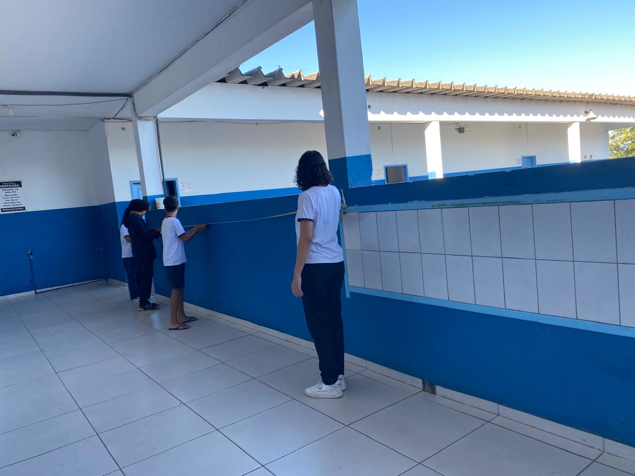 “A proposta central do projeto era transpor a teoria da sala de aula para a realidade do ambiente escolar. Para isso, a turma foi estrategicamente dividida em grupos, e cada equipe ficou encarregada de mensurar um espaço específico da escola. Entre os locais escolhidos estavam o refeitório, a quadra, o pátio do refeitório, a entrada, os corredores e as salas de aula. No dia dedicado à medição, os alunos vieram preparados, trazendo consigo instrumentos essenciais como fitas métricas e trenas. Com entusiasmo e colaboração, cada grupo se dedicou a coletar as dimensões dos espaços designados, vivenciando a aplicação dos conceitos matemáticos em um contexto real”, explicou Poliana.
