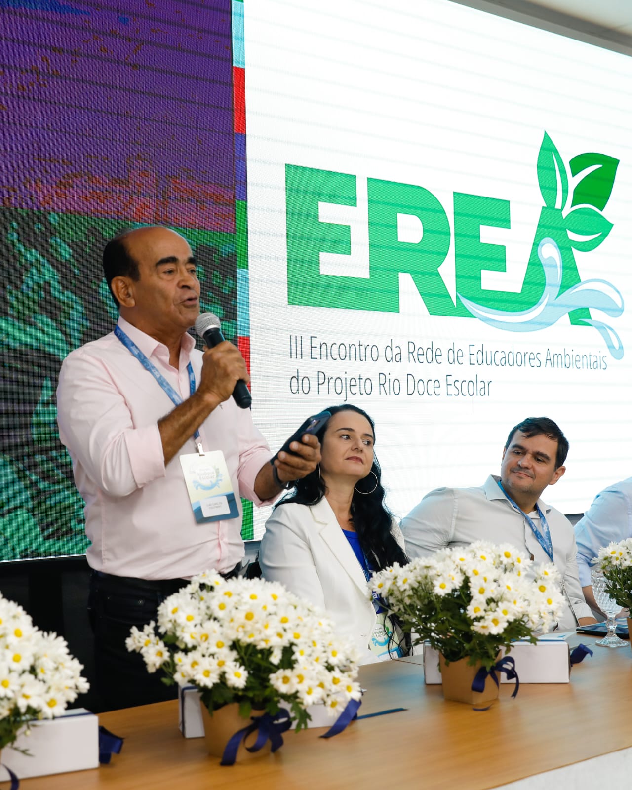 Compuseram a mesa de honra o Diretor-Geral do Ifes Campus Aracruz Leandro Bitti Santana, a Coordenadora-geral do Projeto Rio Doce Escolar e do Programa Educimat, Manuella Villar Amado, o Secretário de Estado da Educação (Sedu), Vitor Amorim de Ângelo, o prefeito Dr. Coutinho, a secretária municipal de Educação (Semed) Jenilza Spinasé, o superintendente de Educação de Linhares (SRE 4) André Filipe Costa Souza, a gerente de Projetos Estratégicos da Secretaria de Estado da Ciência, Tecnologia, Inovação e Educação Profissional, Aline de Paula Nunes, dentre outras autoridades.