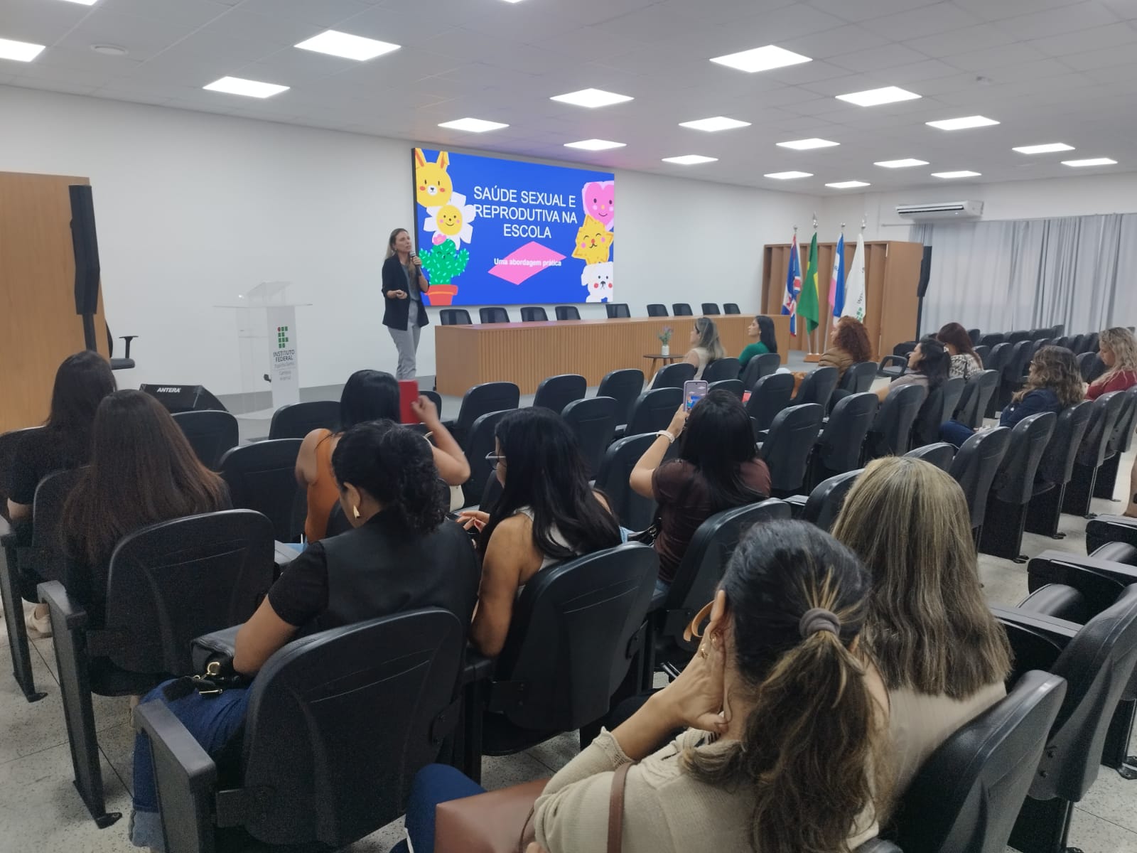 Finalizando os trabalhos, a enfermeira Sabrina Maria Batista do Nascimento ainda falou sobre a saúde sexual e reprodutiva no Ensino Fundamental. Ela apresentou orientações sobre como abordar o tema. Tendo como foco as estratégias para tratar o assunto de forma adequada à faixa etária dos alunos, promovendo um ambiente acolhedor e respeitoso. Para isso, foram discutidas maneiras de facilitar o diálogo entre educadores, profissionais de saúde e estudantes, reforçando a importância da prevenção, do respeito às diferenças e do acesso a informações claras e seguras. “A integração entre escola e saúde é essencial para garantir uma educação integral e o bem-estar dos jovens”.