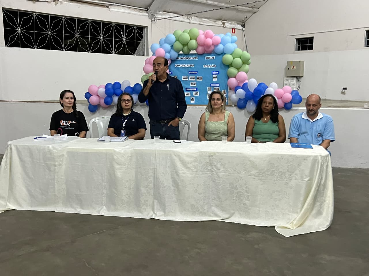 A Prefeitura de Aracruz realizou, nesta quarta-feira (10), no distrito de Guaraná, a certificação de 64 participantes do Projeto Empreendedorismo Social Qualificando Pessoas, uma iniciativa conduzida pela Secretaria Municipal de Desenvolvimento Econômico (Semde) e pela Secretaria Municipal de Desenvolvimento Social (Semds), em parceria com o Sebrae e Senac. O projeto, ofertado como piloto pelo Sebrae, promoveu formação técnica, cidadã e empreendedora para moradores do distrito, fortalecendo competências profissionais e ampliando oportunidades de geração de renda.
