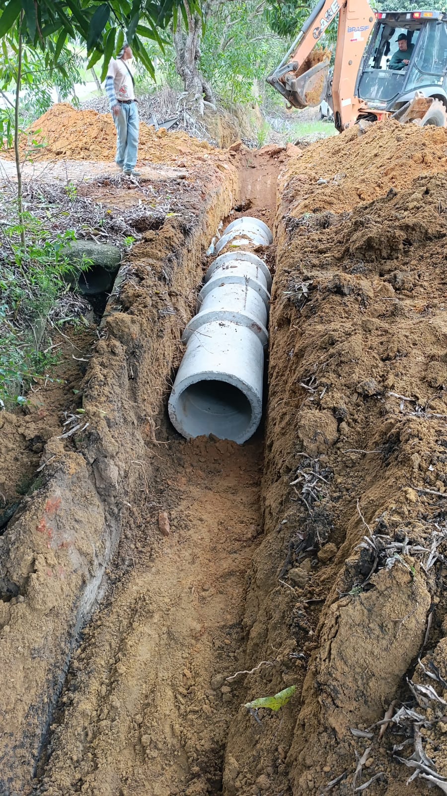 Outra frente de trabalho foi o manilhamento realizado na comunidade de Três Irmãos, melhorando o escoamento da água pluvial e reduzindo os impactos das chuvas sobre as estradas rurais, garantindo mais segurança e acessibilidade para os moradores e produtores locais.