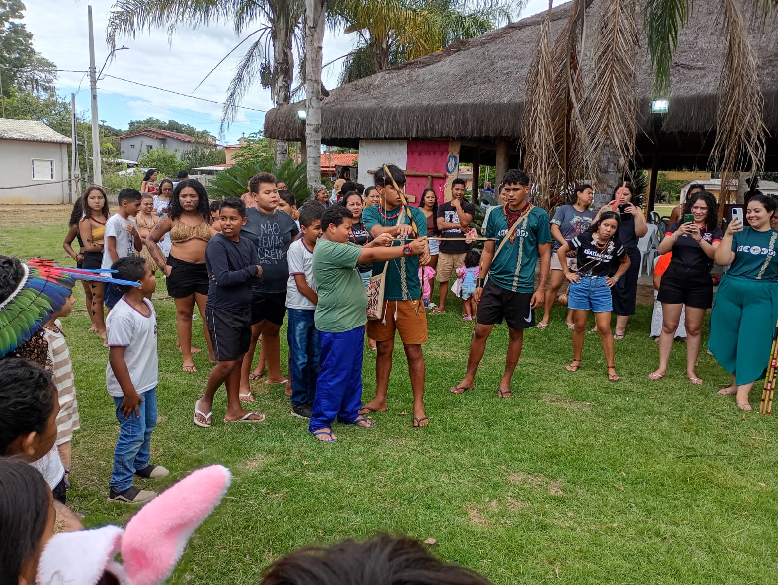 A Escola Municipal de Ensino Fundamental Indígena (Emefi) Ybyrapytanga, aldeia Pau-Brasil, promoveu na manhã deste sábado (29), na cabana central, a 4ª edição do Projeto Kûatiarupema (Peneira Literária), que é uma extensão do “Comunidade de Leitores”. Neste ano, a escola promoveu em sua culminância, os “Abá Nhemosaraîva” (Jogos Tradicionais Indígenas), com as turmas apresentando como foram desenvolvidas a prática de cada modalidade, e a confecção dos materiais usados.