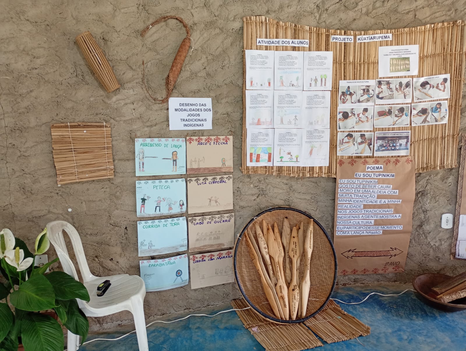 A cabana central também estava ornamentada com várias exposições artísticas desenvolvidas pelos estudantes durante o ano letivo com a leitura, escrita e matemática, em um trabalho interdisciplinar. Uma a uma, cada turma envolvida era chamada ao palco na companhia das professoras para fazerem seus relatos. Durante todo o ano as crianças se envolveram com as práticas das modalidades como a zarabatana, marana ou sama (cabo de força ou cabo de guerra), mina ityka (arremesso de lança), ybyrapá u’uba abé (arco e flecha), topytá ou nhãna (corrida com tora), peteka (peteca) e maraká nhãna (corrida do maraka).