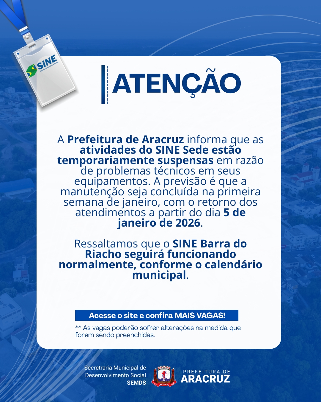 Semsa divulga Retificação Nº 01 do Processo Seletivo Nº 001/2025