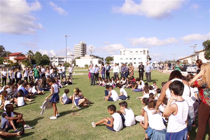 Durante a cerimônia de abertura todos ficaram em posição de respeito para a execução dos hinos nacional e municipal. O Secretário de Meio Ambiente foi o primeiro a se manifestar. Em um gesto simbólico ele pediu que todas as crianças e alunos se sentassem em um grande círculo para falar da necessidade de preservar o meio ambiente.