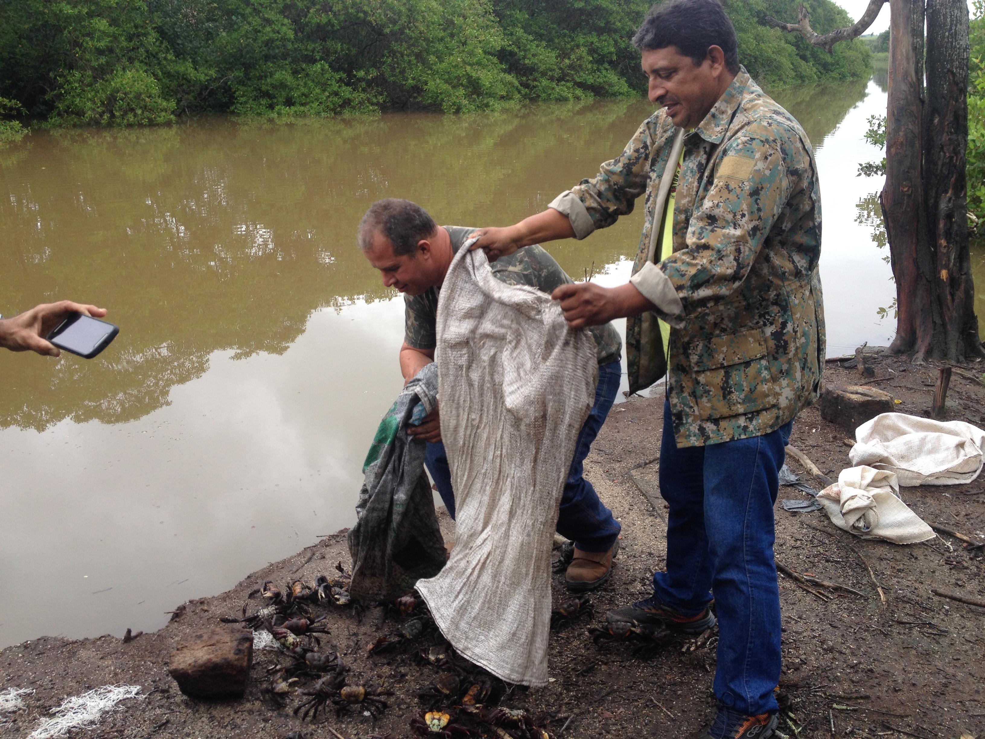 Caranguejos capturados no período de andada são devolvidos ao manguezal do Piraquê-açu