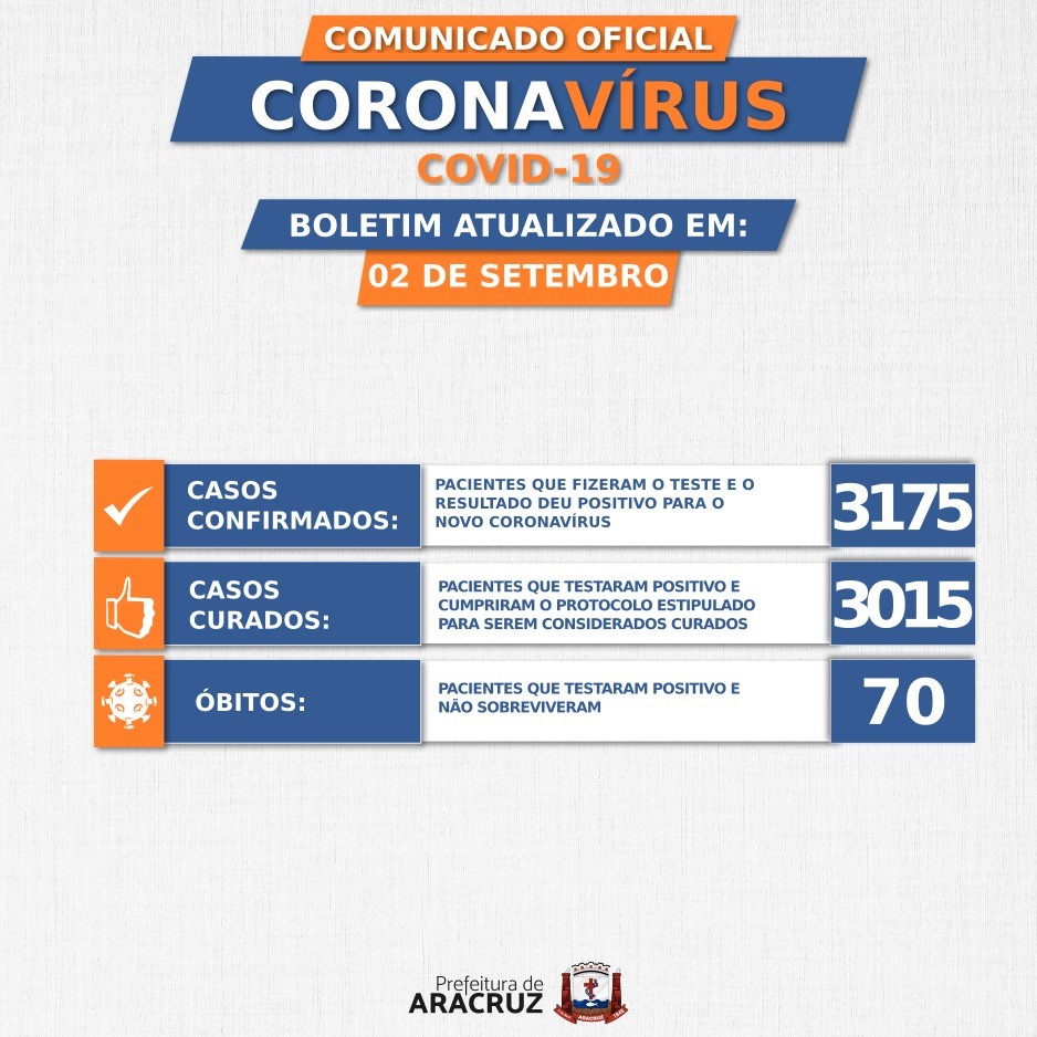 Confira o boletim Epidemiológico do dia 02/09. Fonte: Secretaria Municipal de Saúde (Semsa).