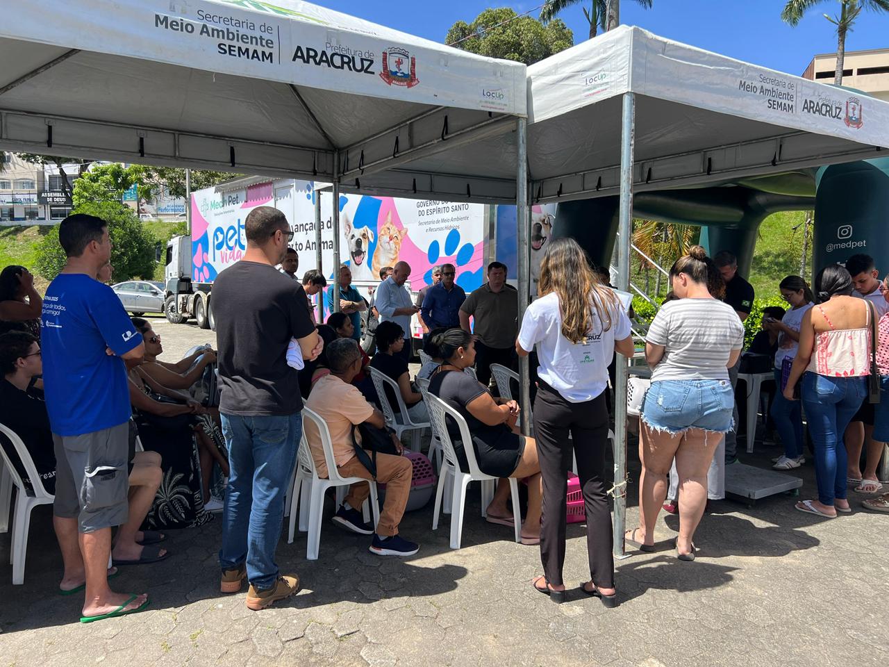 Enquanto equipes trabalham dentro da Carreta, do lado de fora tutores e protetores recebem orientações. Cada procedimento realizado, cada microchip implantado e cada vacina aplicada pela equipe do Centro de Controle de Zoonoses da Prefeitura de Aracruz é um passo em direção a uma cidade com animais mais protegidos.