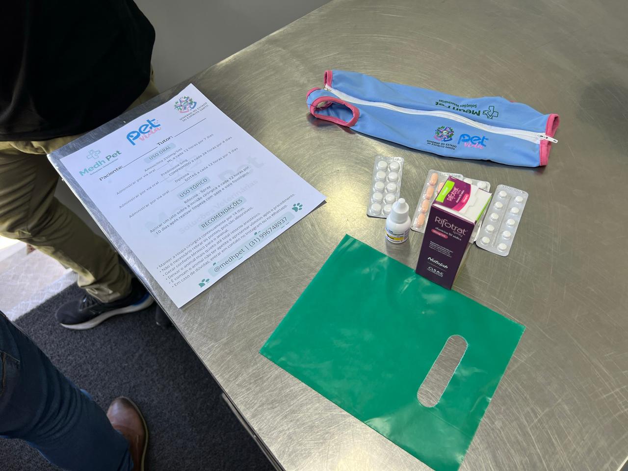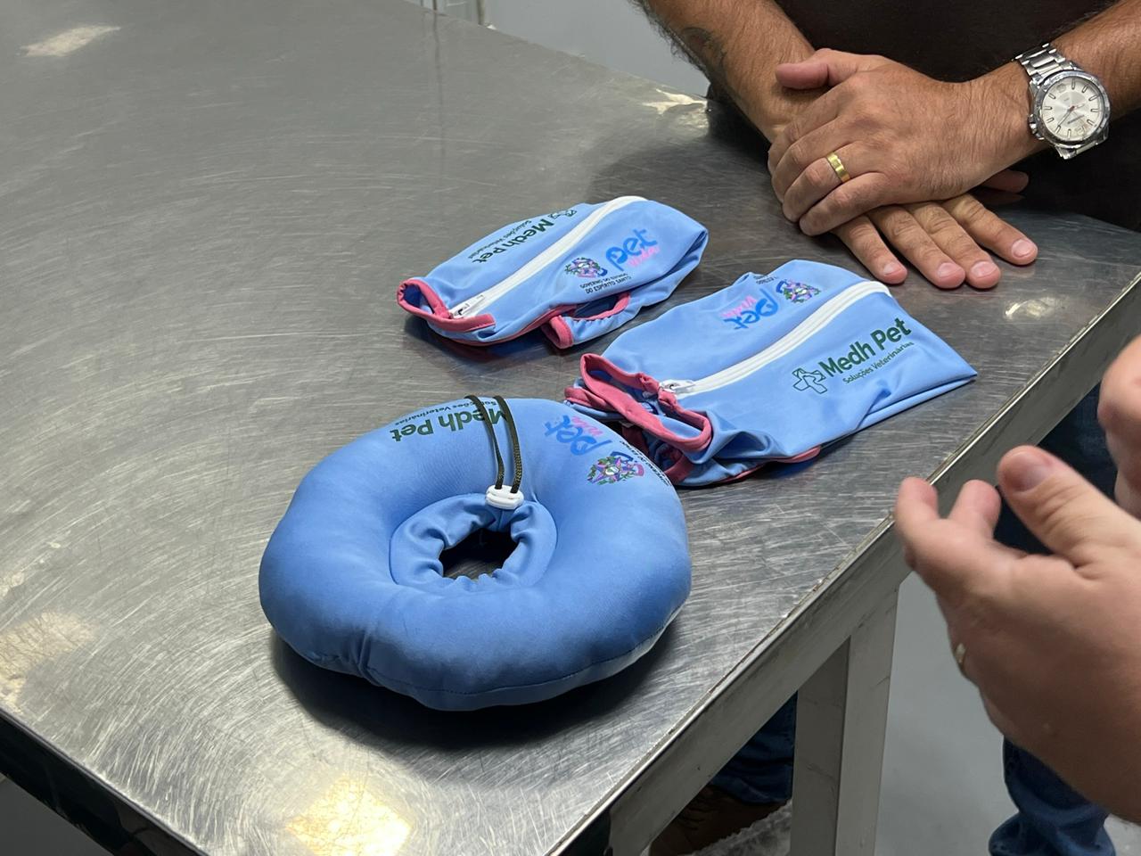 • roupa pós-cirúrgica ou colar elisabetano, garantindo conforto,