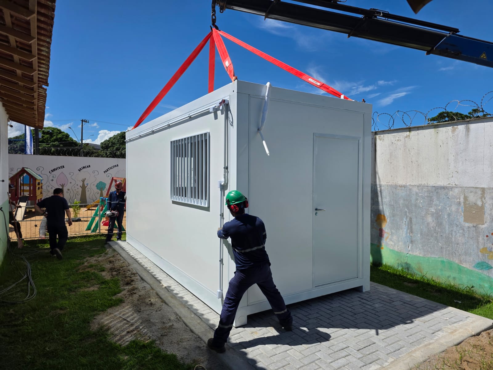 A Secretaria Municipal de Educação (Semed) deu início, na tarde desta quinta-feira (29), à instalação de salas modulares em escolas da Rede Municipal de Ensino. A primeira instituição a receber os módulos foi o Centro Municipal de Educação Infantil (Cmei) Tia Anastácia, em Nova Santa Cruz. Essas estruturas terão diferentes funcionalidades em cada escola, podendo servir como bibliotecas, salas de Atendimento Educacional Especializado (AEE), salas de projetos, salas de professores, entre outras.