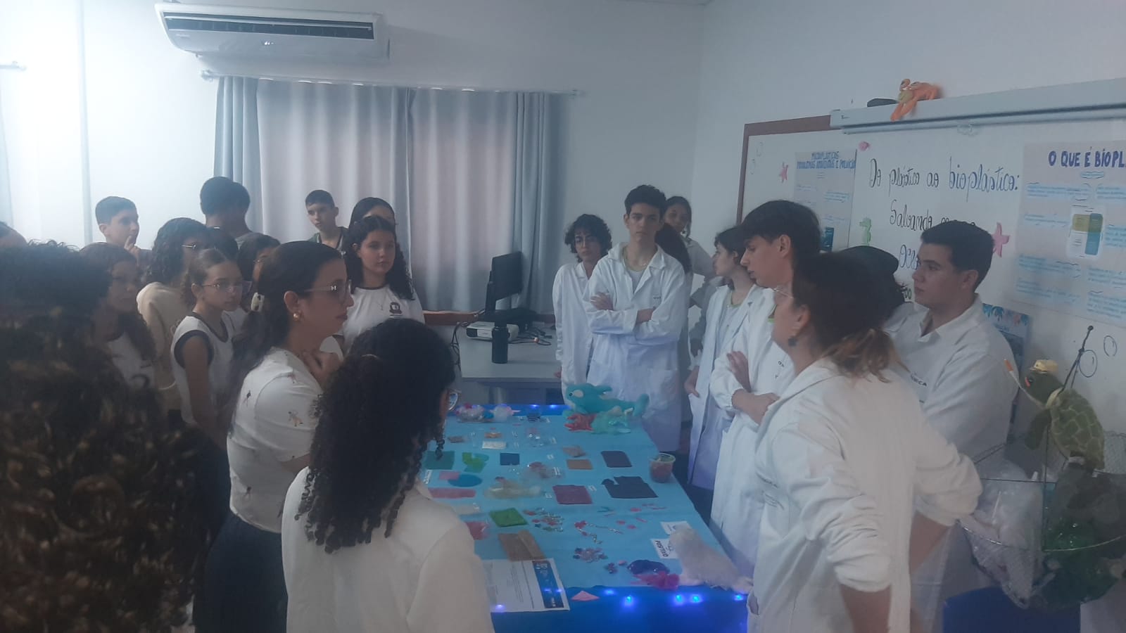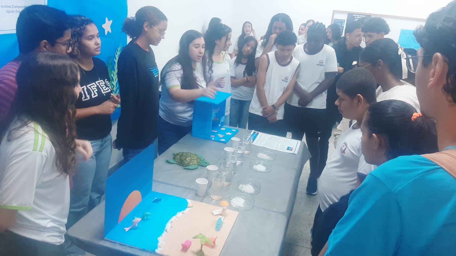 Estandes como “Do plástico ao bioplástico – Salvando nossos oceanos”; “Plataformas de petróleo off shore – funcionamento e impacto ambiental”; “Análise da água mineral”; “Análise quantitativa do mel”; “Extração do óleo do mamão”; “Obtenção do biodiesel a partir do óleo de soja; “Aplicação de biomassa da banana na produção de cápsulas absorventes para a remoção de corrente d´água”; o “Shampoo de tratamento de maracujá” e o “Uso de IA no desenvolvimento de pesquisas científicas como o biopolímero”, foram alguns dos exemplos que ilustram muito bem a questão da preservação dos recursos naturais.