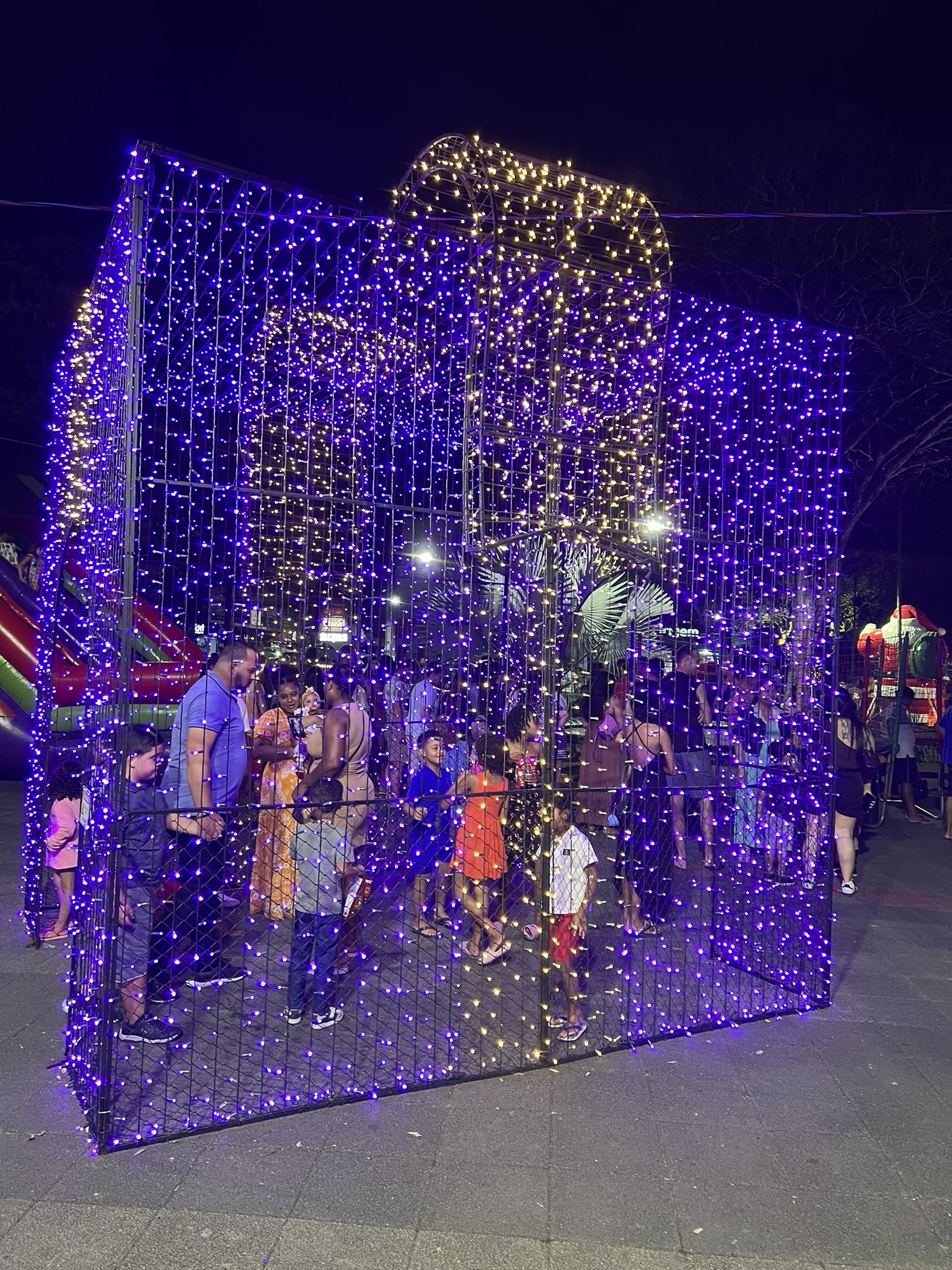 Com os olhos brilhando e ansiosas, as crianças puderam ver a praça da cidade ganhar cor, vida e brilho. Cada luz acesa era acompanhada de pequenos suspiros, pulos de alegria e aquela energia contagiante que só a infância é capaz de entregar. Famílias inteiras se reuniram para acompanhar o momento, transformando o espaço público em um grande abraço coletivo.