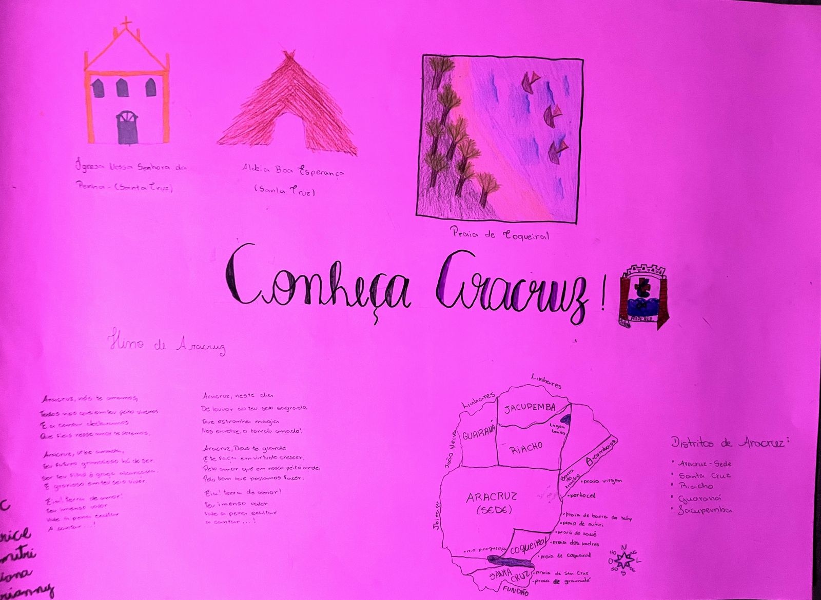 Durante uma semana, as turmas do 6º aos 9º anos embarcaram na “Jornada dos Exploradores”, um percurso dividido em quatro etapas, nas quais observaram, sentiram e refletiram sobre as riquezas culturais, naturais e humanas de Aracruz. A oficina estimulou o desenvolvimento de competências empreendedoras como colaboração, visão, pensamento crítico, empatia e iniciativa, alinhadas à matriz EntreComp, que orienta a formação de cidadãos empreendedores e protagonistas de seus territórios.
